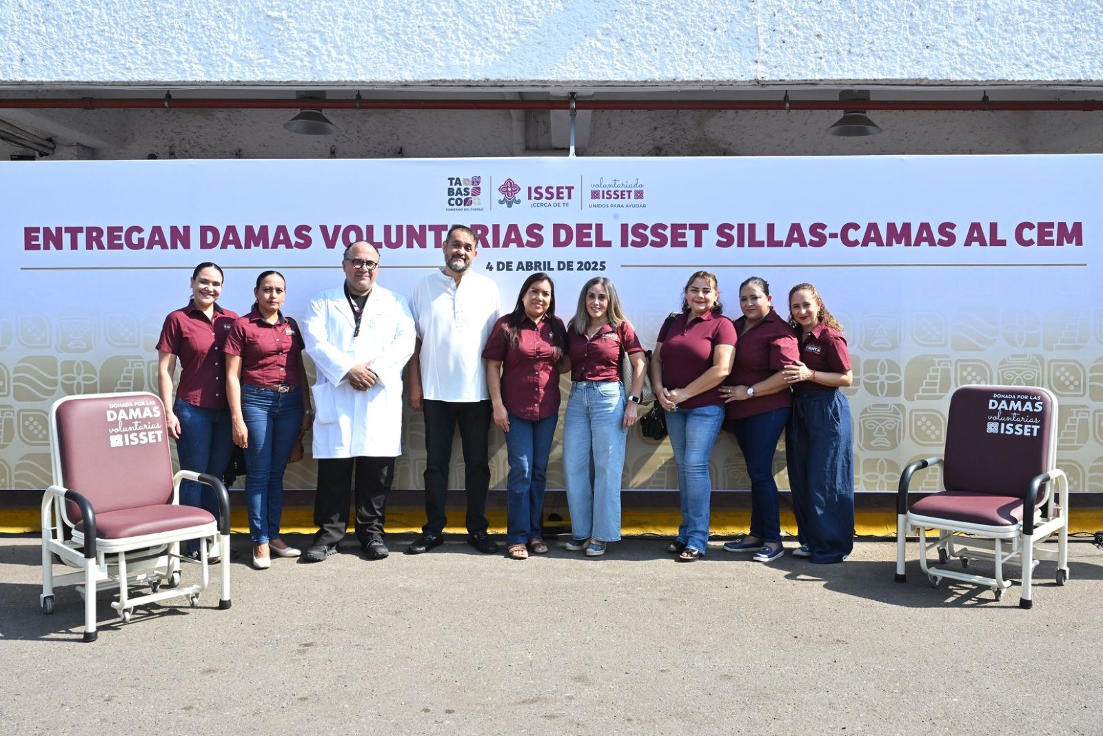 Entregan Damas Voluntarias del ISSET sillas-camas al CEM